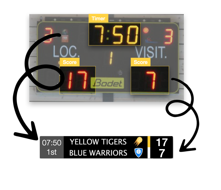 Our unique AI technology turns a physical display into a video overlay effortless. Stop entering points manually or handling timer. Simply record the physical display and let ScoreCastPro control the scoreboard automatically.